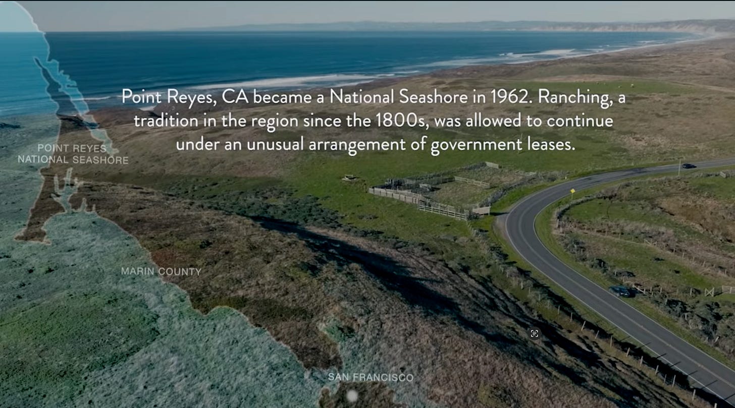 In the Point Reyes situation, as the ranches were starved of profits, they could not maintain their equipment and infrastructure. Then environmentalists moved onto the point and started recording the jobs the ranchers were unable to complete, took them back to the government and used that to further ruin their chances of survival.